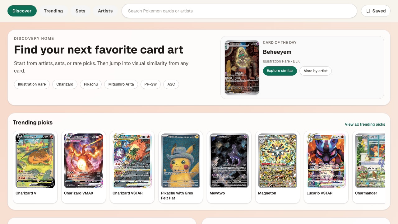 Discover visually similar card artwork with AI-powered recommendations. Browse by artist and style.